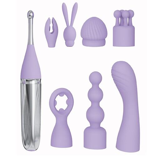 Have a different “O’ every day of the week with this rechargeable vibe with 8 attachment heads! Clit-hugger, bunny, pinpoint, beaded, and more styles.