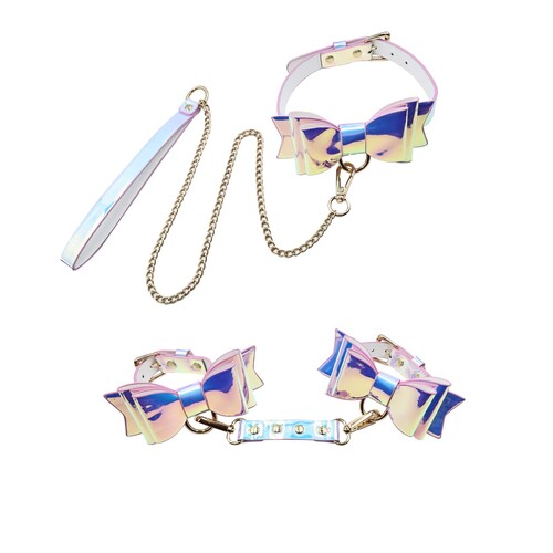 The Fairy Bondage Set is great for nights of kinky fun! Iridescent gear looks totally magical. Cuffs, collar, leash and connector included!