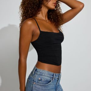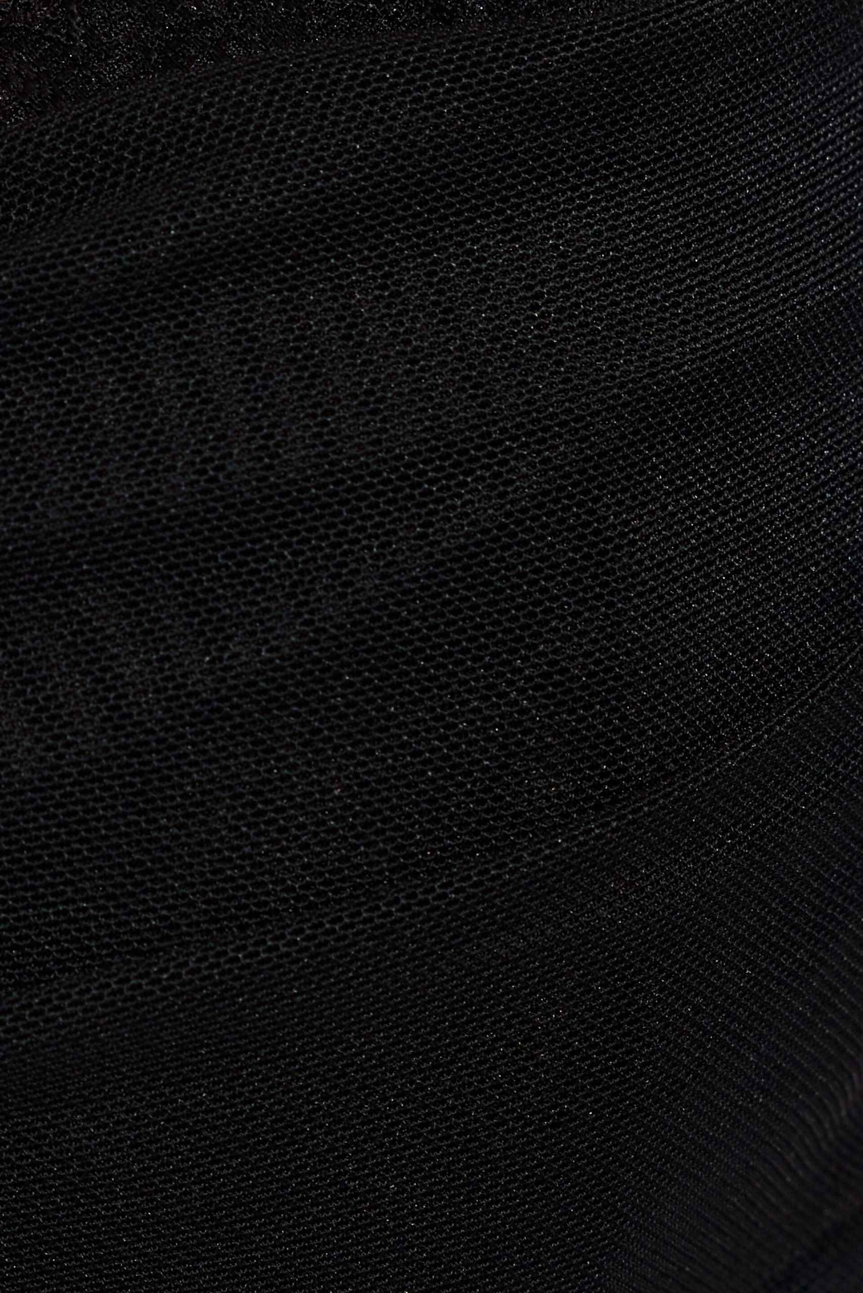 Ally Mesh Peekaboo Bustier Black women – Peekaboo! Features Adjustable shoulder straps Cowl detail at neckline Underwire at padded cups Boning throughout Adjustable hook-eye closure at back Size & Fit Fit: Fitted, stretchy Length: Cropped Model is wearing size S Materials & Care Content: 85% nylon, 15% spandex Care: Machine wash, cold Imported