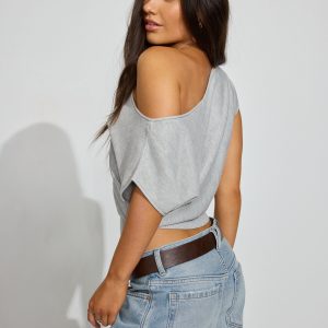 Asymmetric Cinched Waist Sweater Gray women – Getting ready is a cinch. Features Asymmetric off-the-shoulder construction Short cap sleeves Cinched rib knit waist Size & Fit Fit: Relaxed Length: Cropped Model is wearing size S Materials & Care Content: 70% viscose, 30% nylon Care: Machine wash, cold Imported