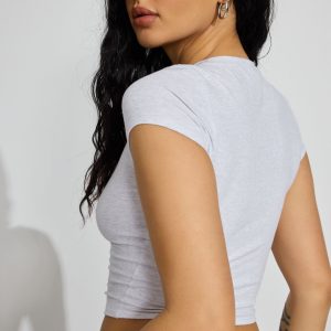 Crewneck Cropped T-Shirt Gray women – This cute little tee is a wardrobe essential! Features Ribbed crewneck Short sleeves Jersey knit Size & Fit Fit: Fitted, stretchy Length: Cropped Model is wearing size S Materials & Care Content: 80% cotton, 15% organic cotton, 5% spandex Care: Machine wash, cold Imported