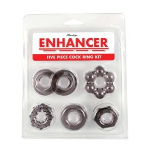 Equip your package for maximum pleasure with the Enhancer Ring Set! Includes 5 erection boosters in different stimulating shapes. Discreet shipping.