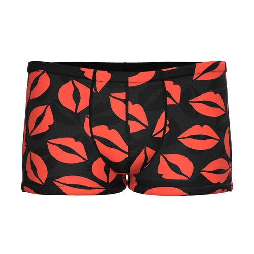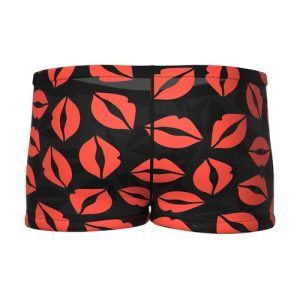 Slip on these skimpy shorts covered in bright red lips and tell your lover to pucker up! Order the Kiss Me Sheer Mesh Mini Shorts now for discreet shipping.