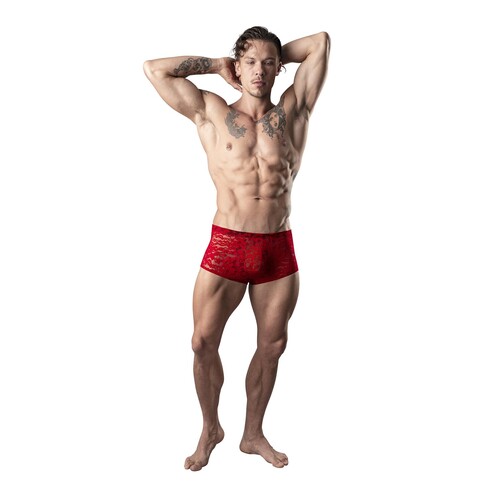 Flaunt your tight tush and big bulge in this lace mini short! It accentuates in front and back for a sexy look you’ll love. Shop this and more styles now.