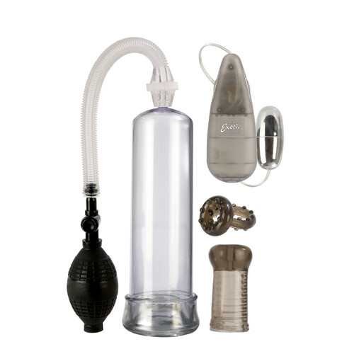 Grow your wood fast with Sta-Hard® Erector Set's proven penis pump method –– slide it into the cylinder and squeeze the pump bulb!