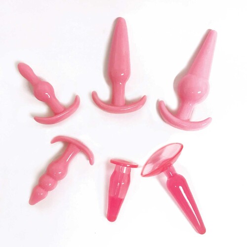 Satisfy your backdoor curiosity with this collection of 6 anal plugs featuring various shapes and sizes. Low prices, free gifts, discreet shipping.