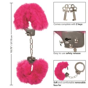 Sensually covered with our fluffiest, furriest faux fur, add these adjustable, lockable metal cuffs to your bedroom antics & role-playing! Keys included.